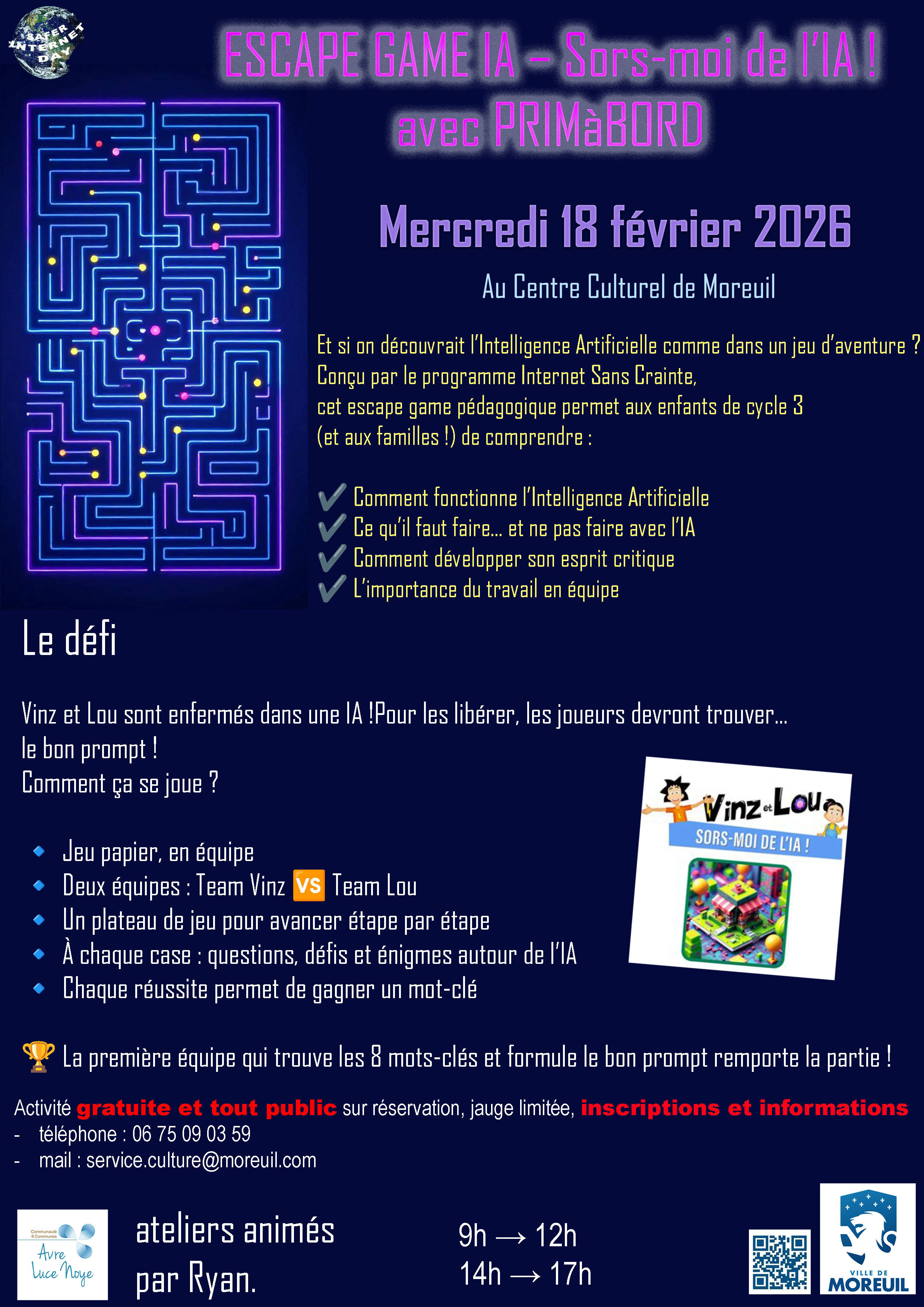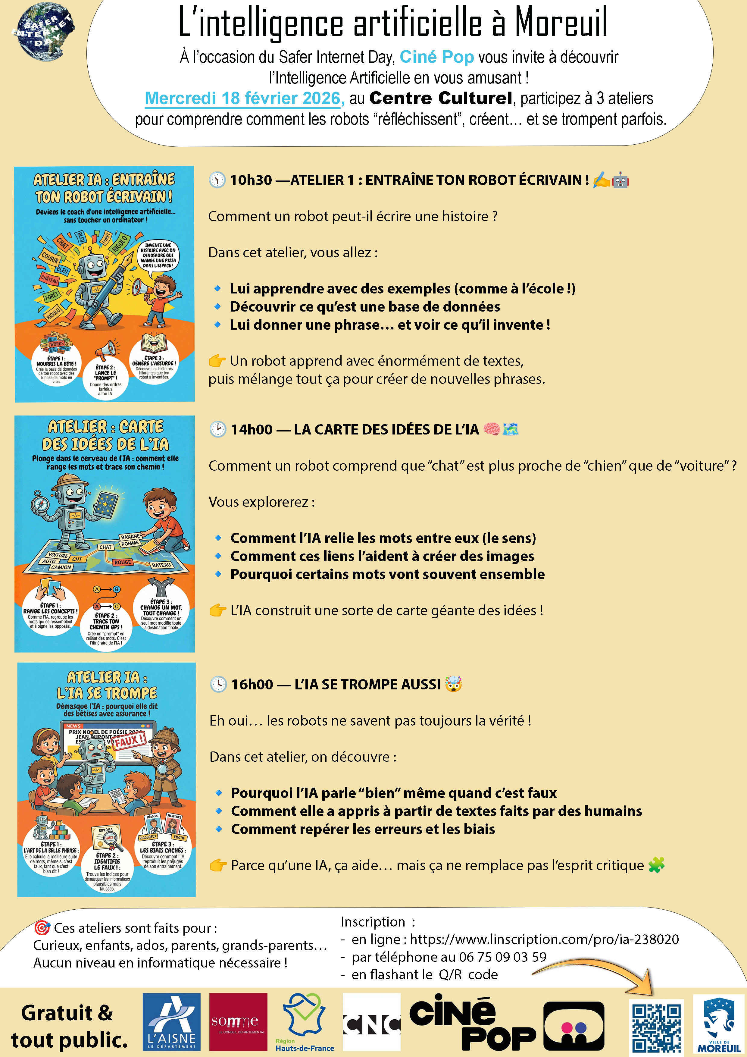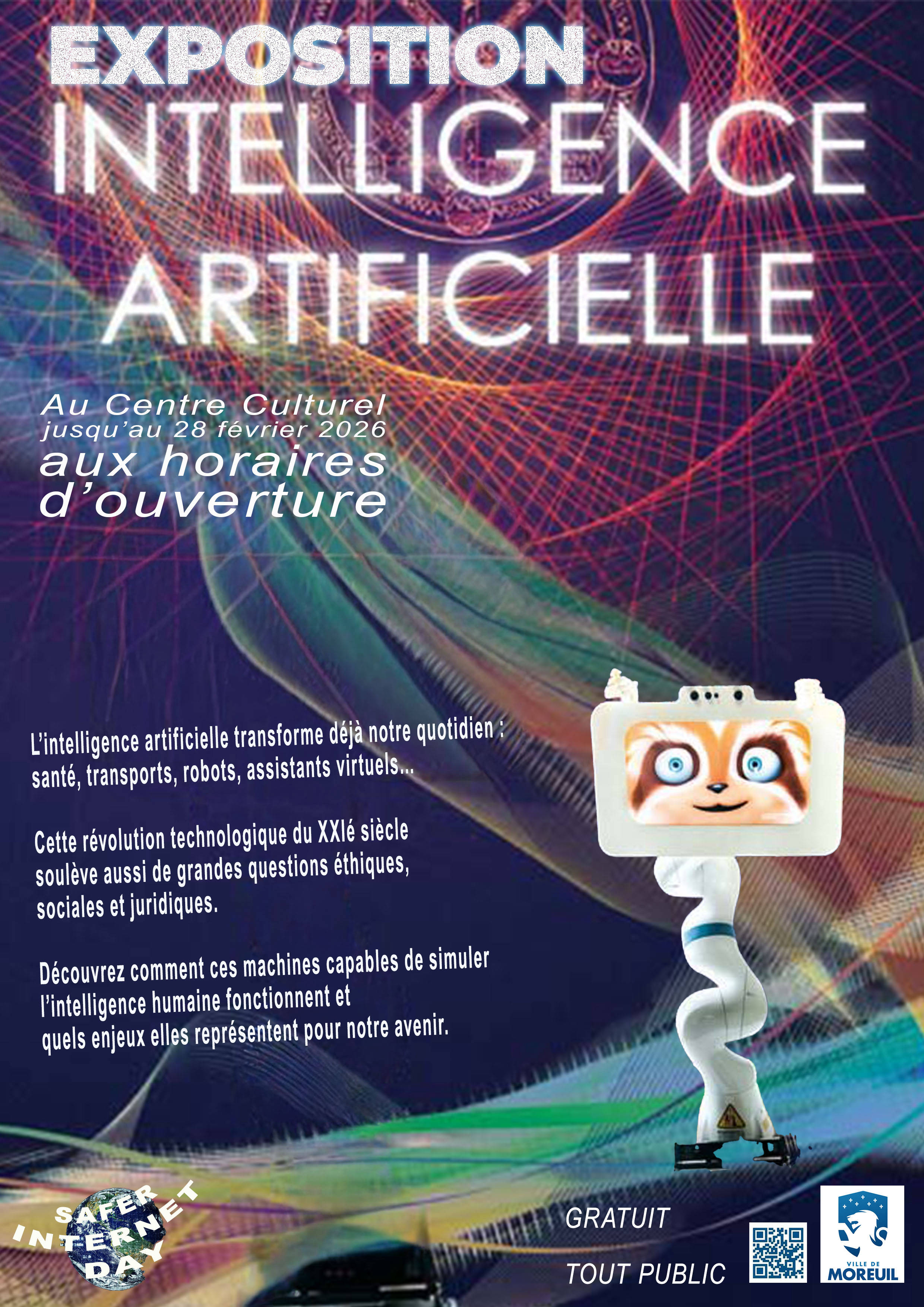 Ă lâoccasion du Safer Internet Day, la MunicipalitĂ© de Moreuil vous propose une journĂ©e spĂ©ciale autour de lâIntelligence Artificielle au Centre Culturel de Moreuil. Et bonne nouvelle : tout est gratuit et ouvert Ă tous !