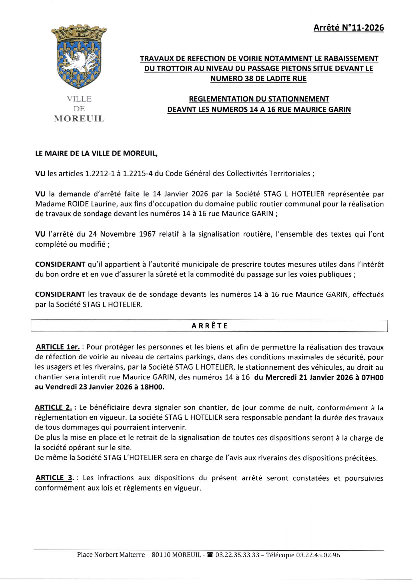 Arrêté n°3/2026