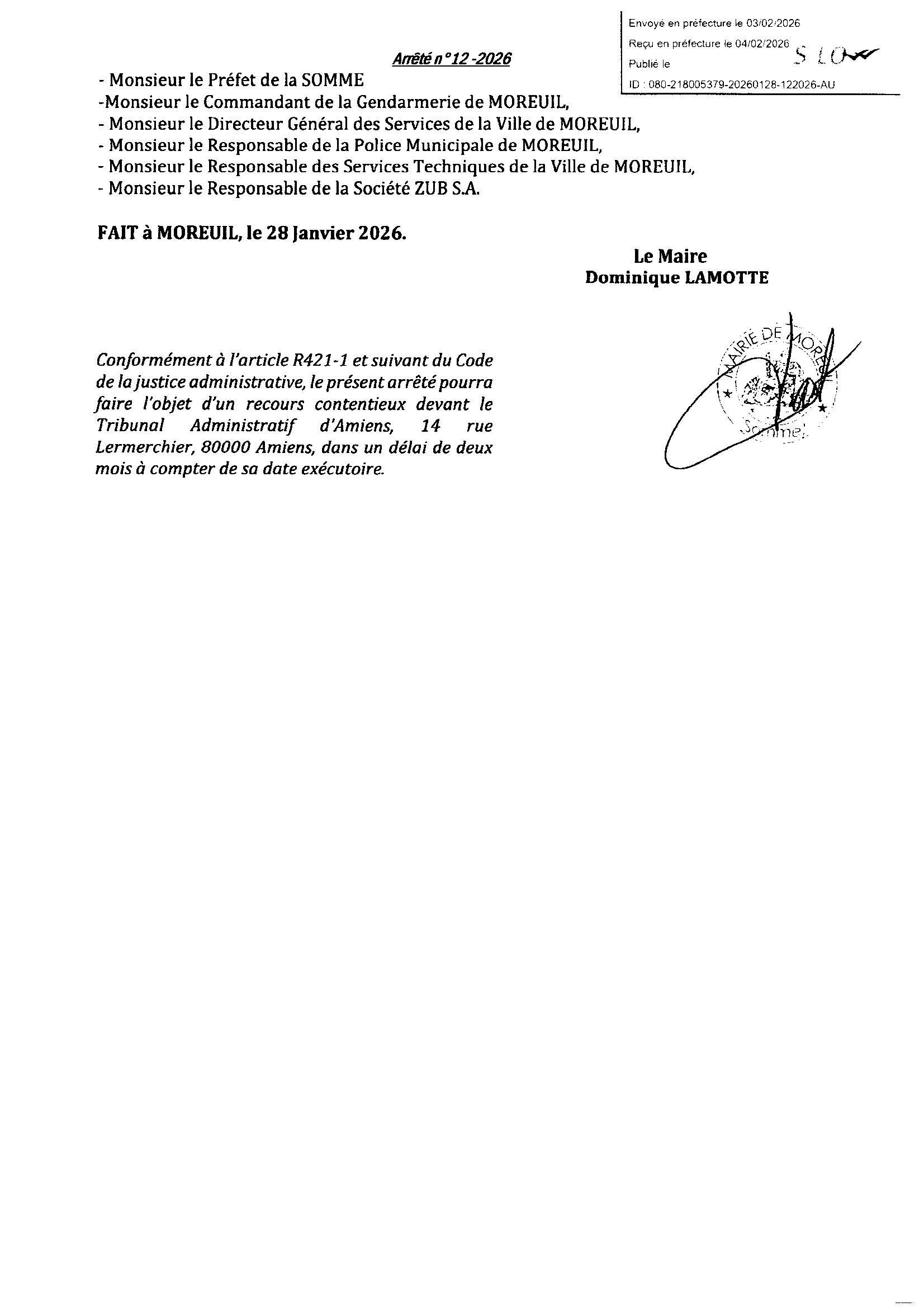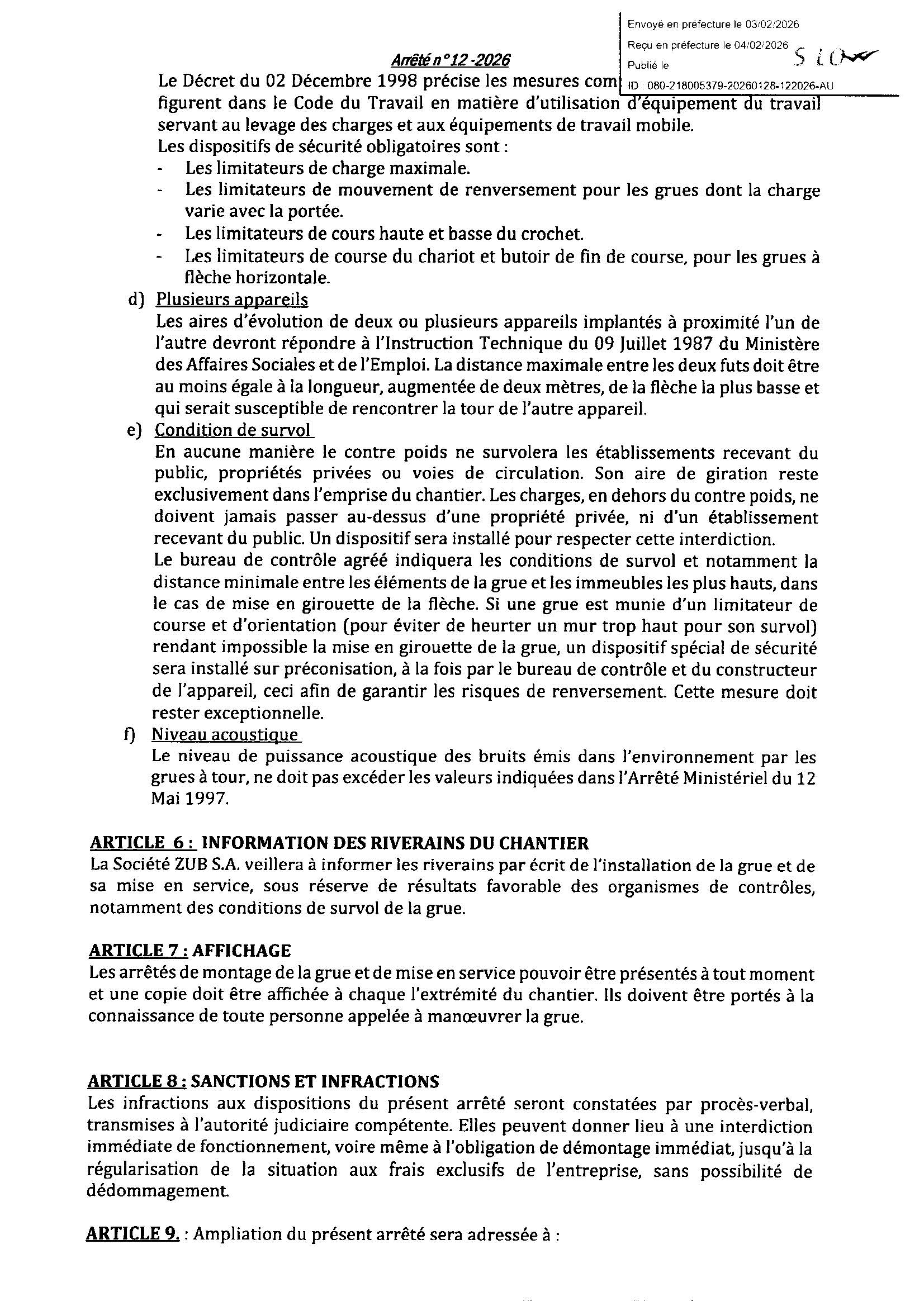Arrêté n°12/2026
