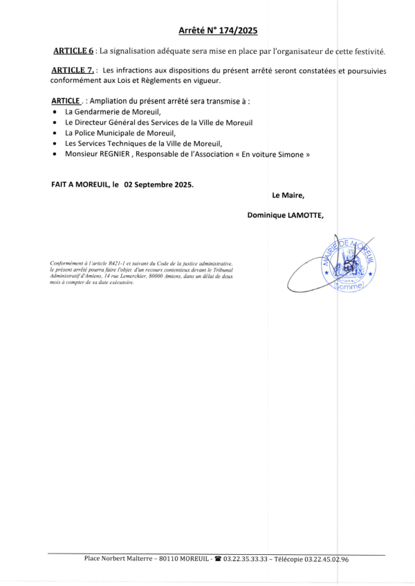 Arrêté n°174/2025