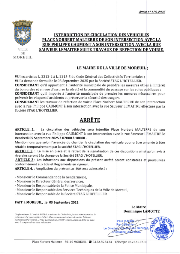 Arrêté n°175/2025