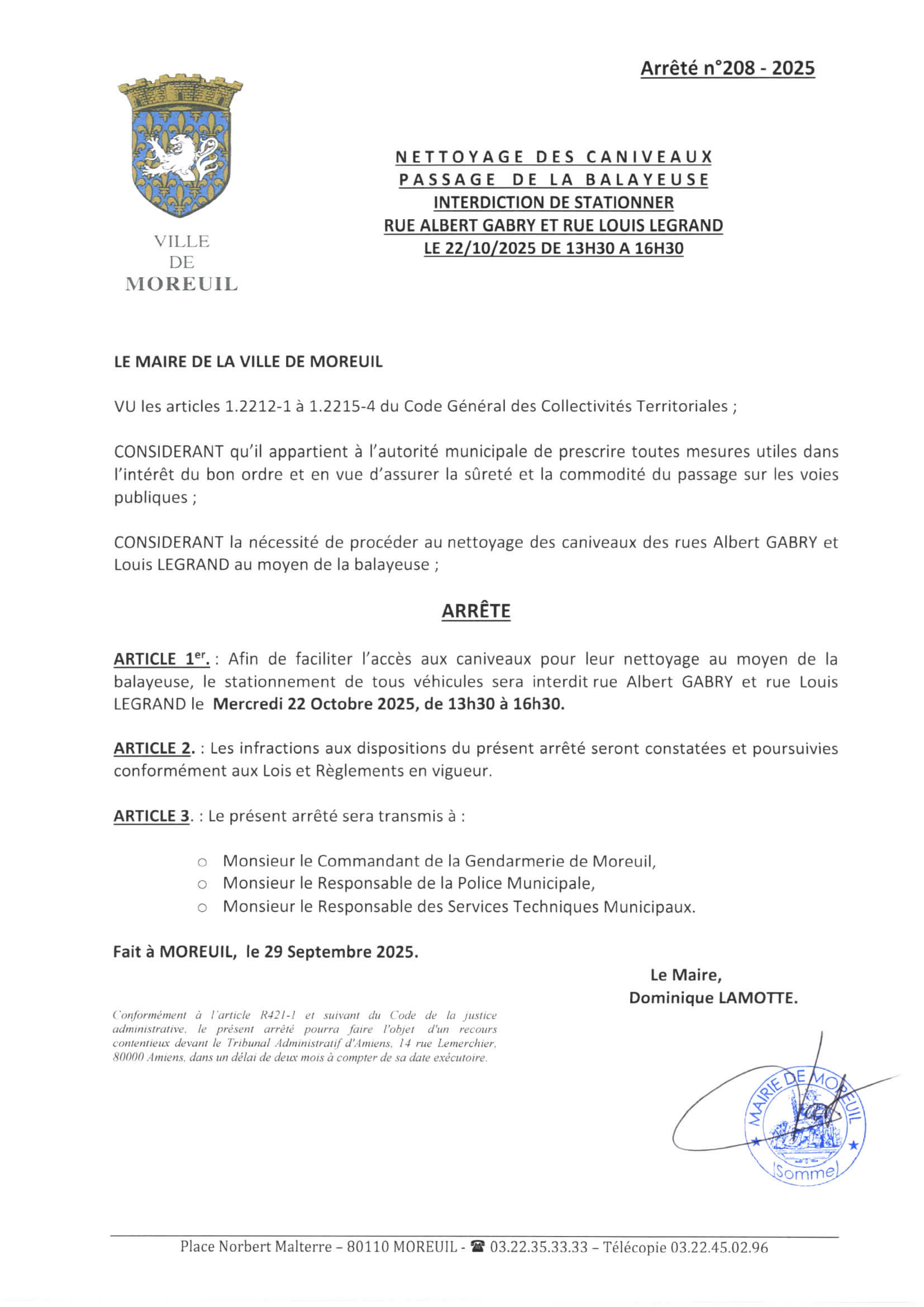 Arrêté n°208/2025