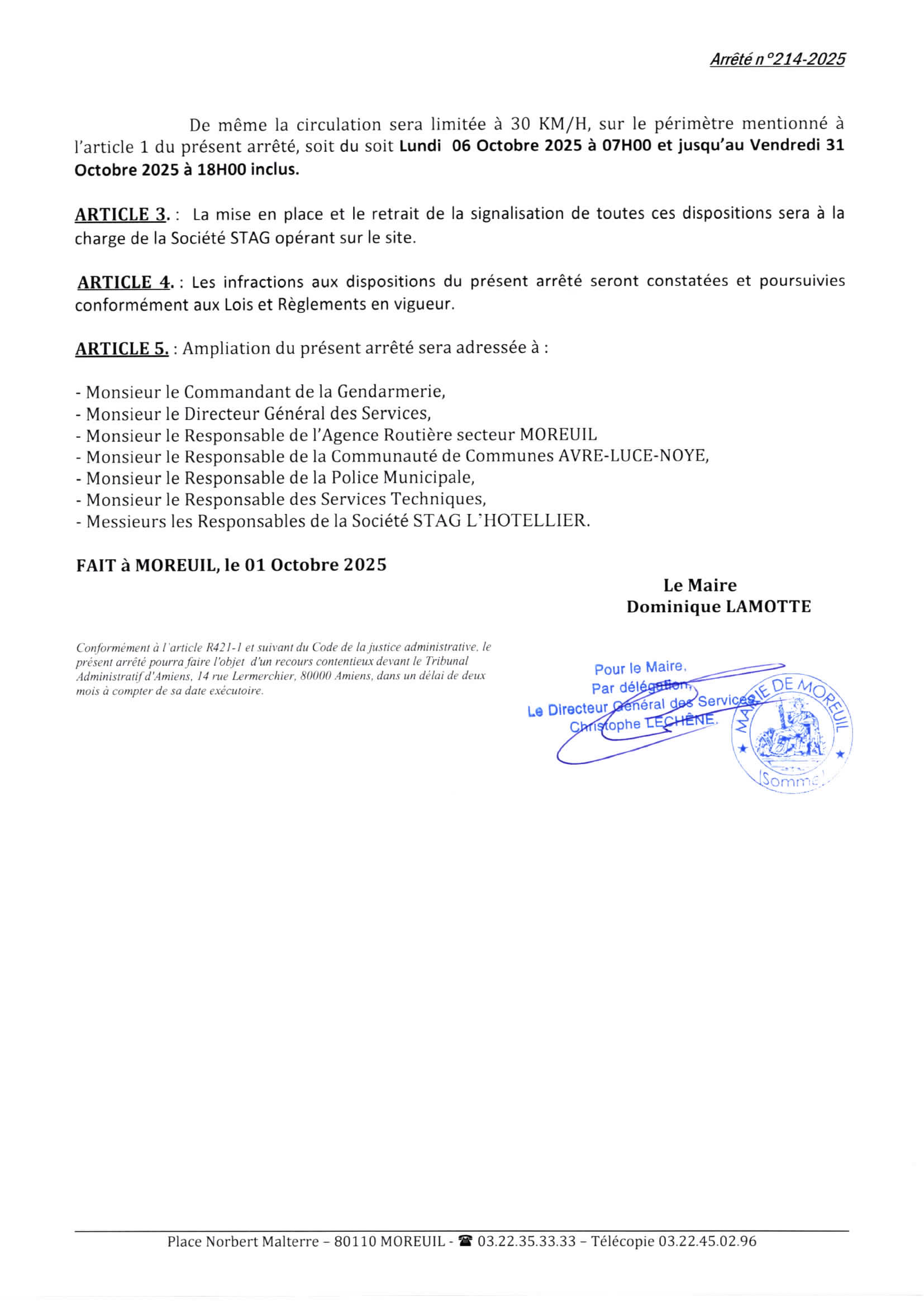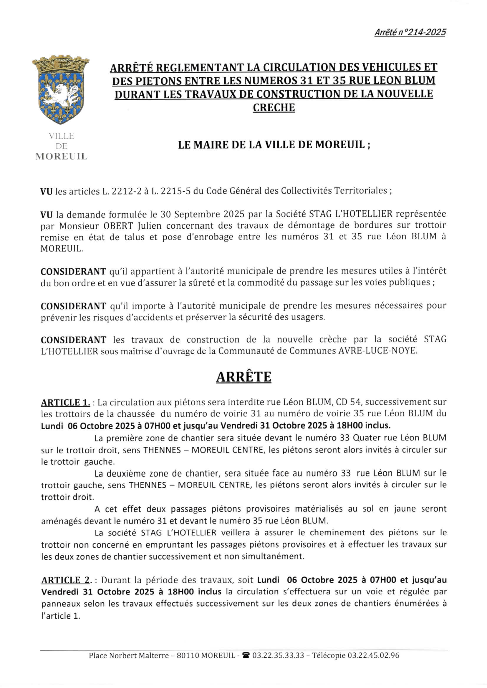 Arrêté n°214/2025