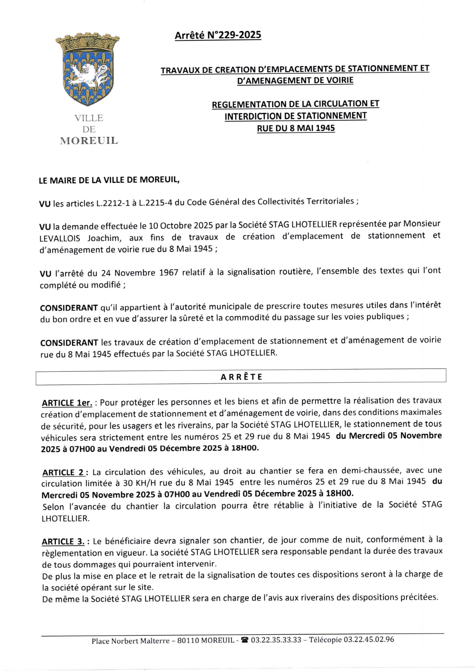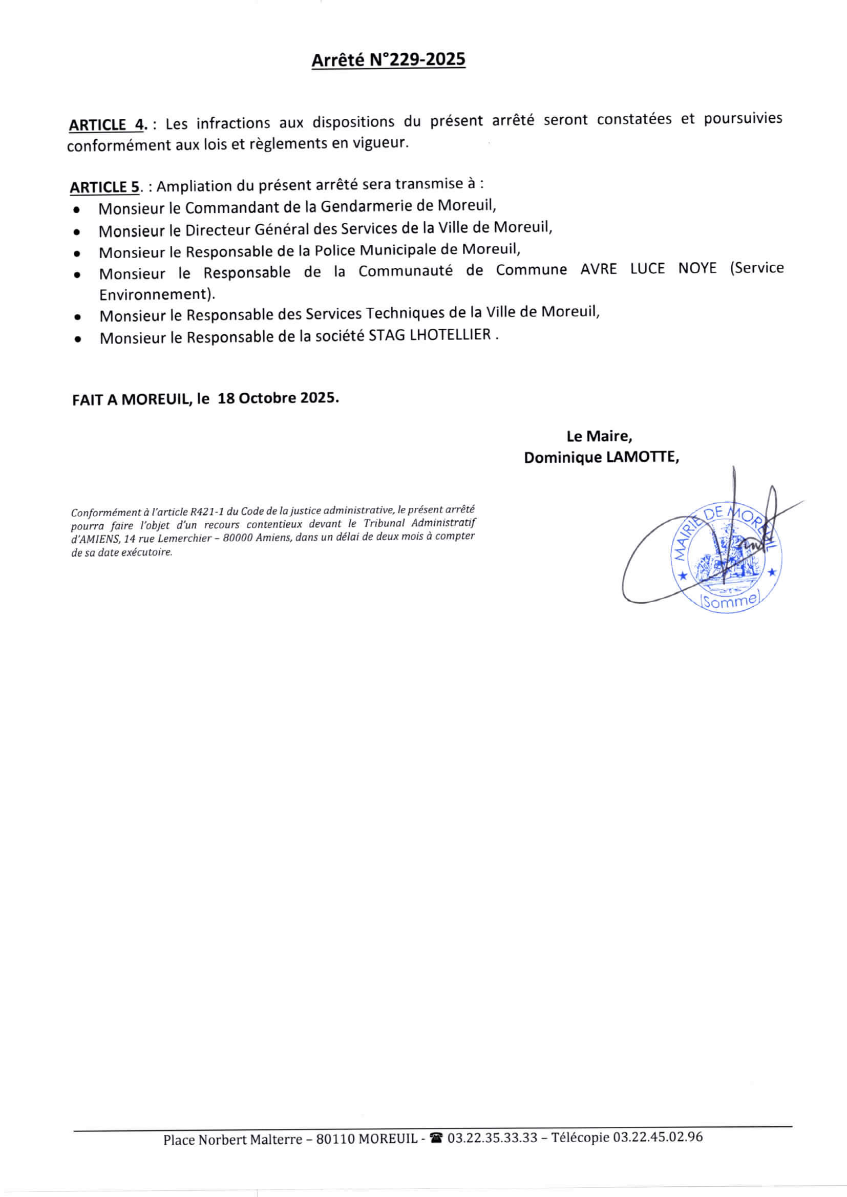 Arrêté n°229/2025