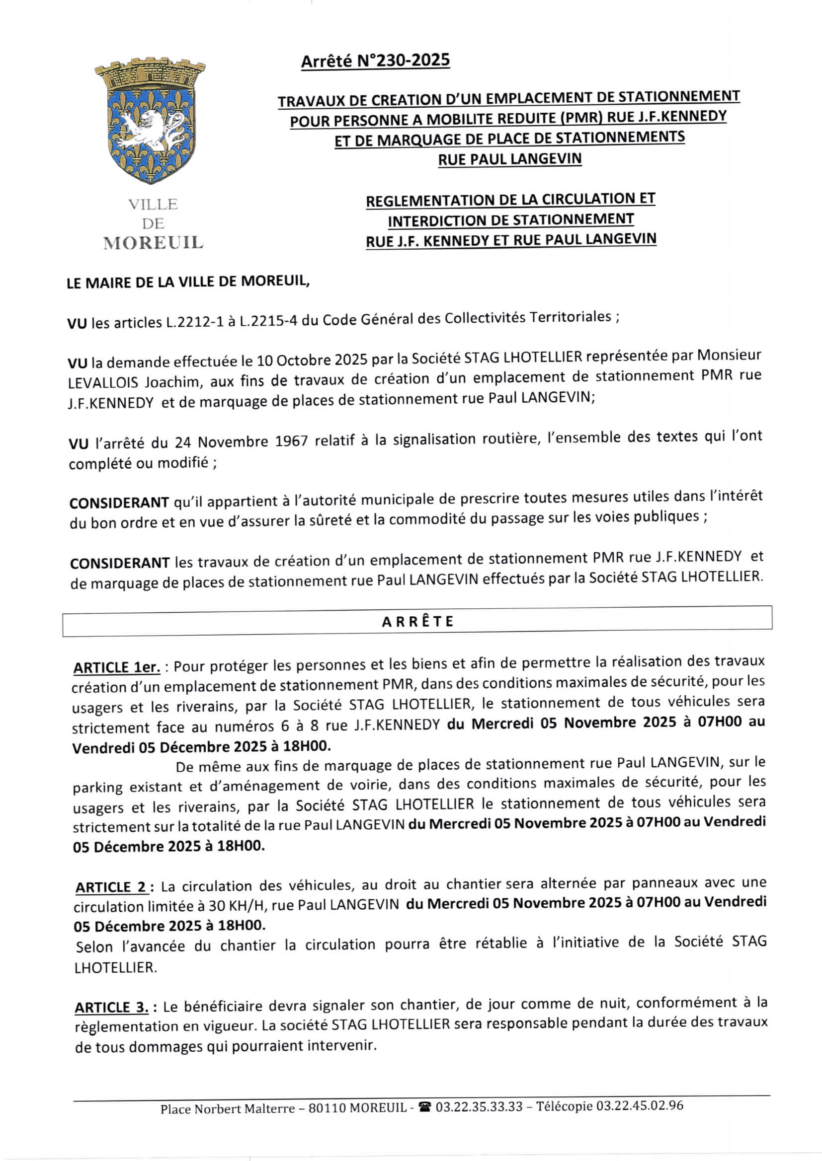 Arrété MESURES D'URGENCES SUITE PERIL SUR LE BATIMENT PARCELLE AH 701 RUE DE LA PETITE CHAPELLE