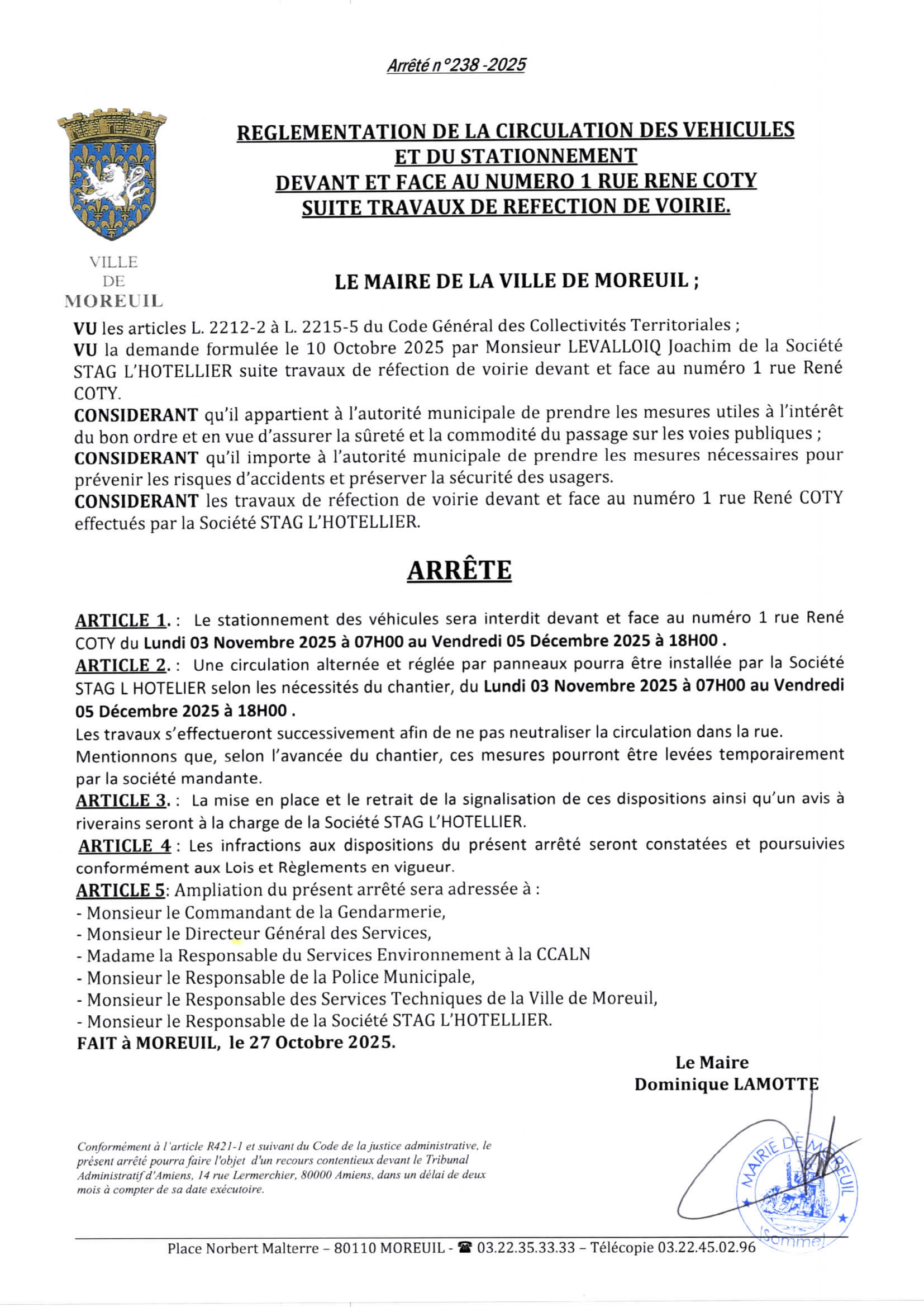 Arrêté n°238/2025