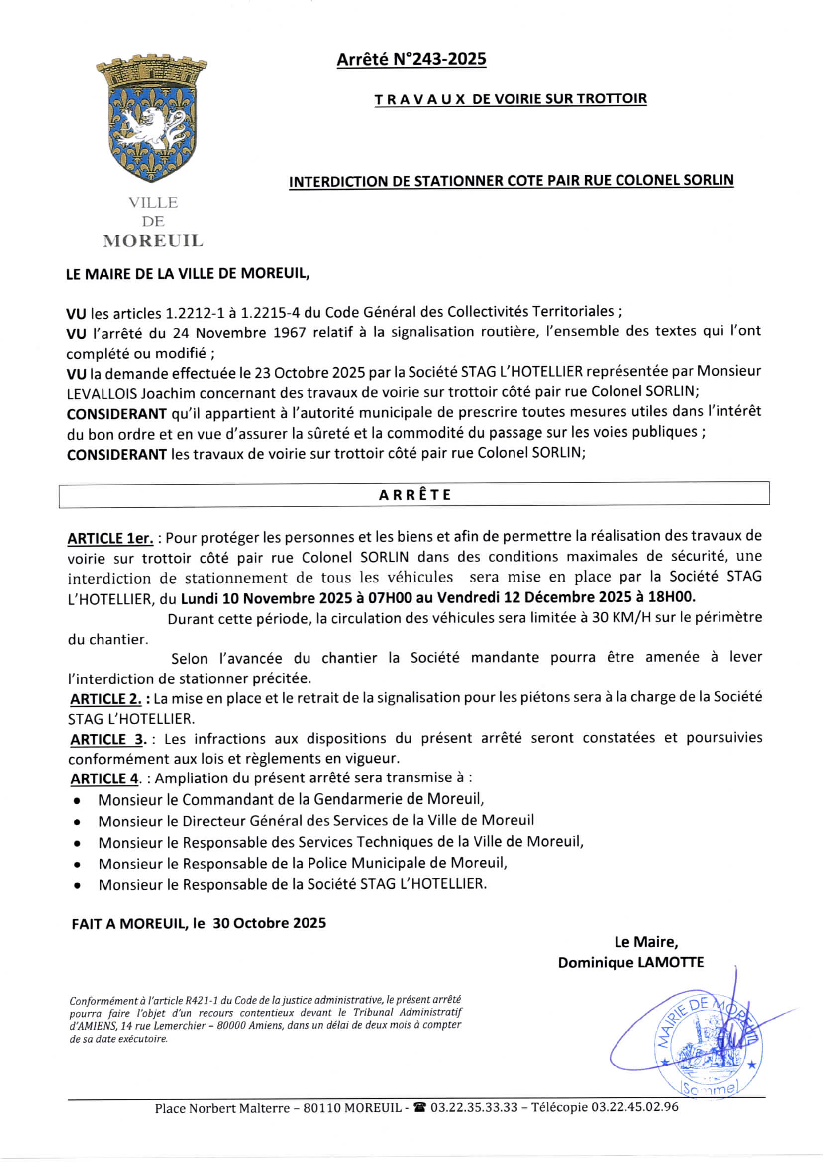 Arrêté n°243/2025