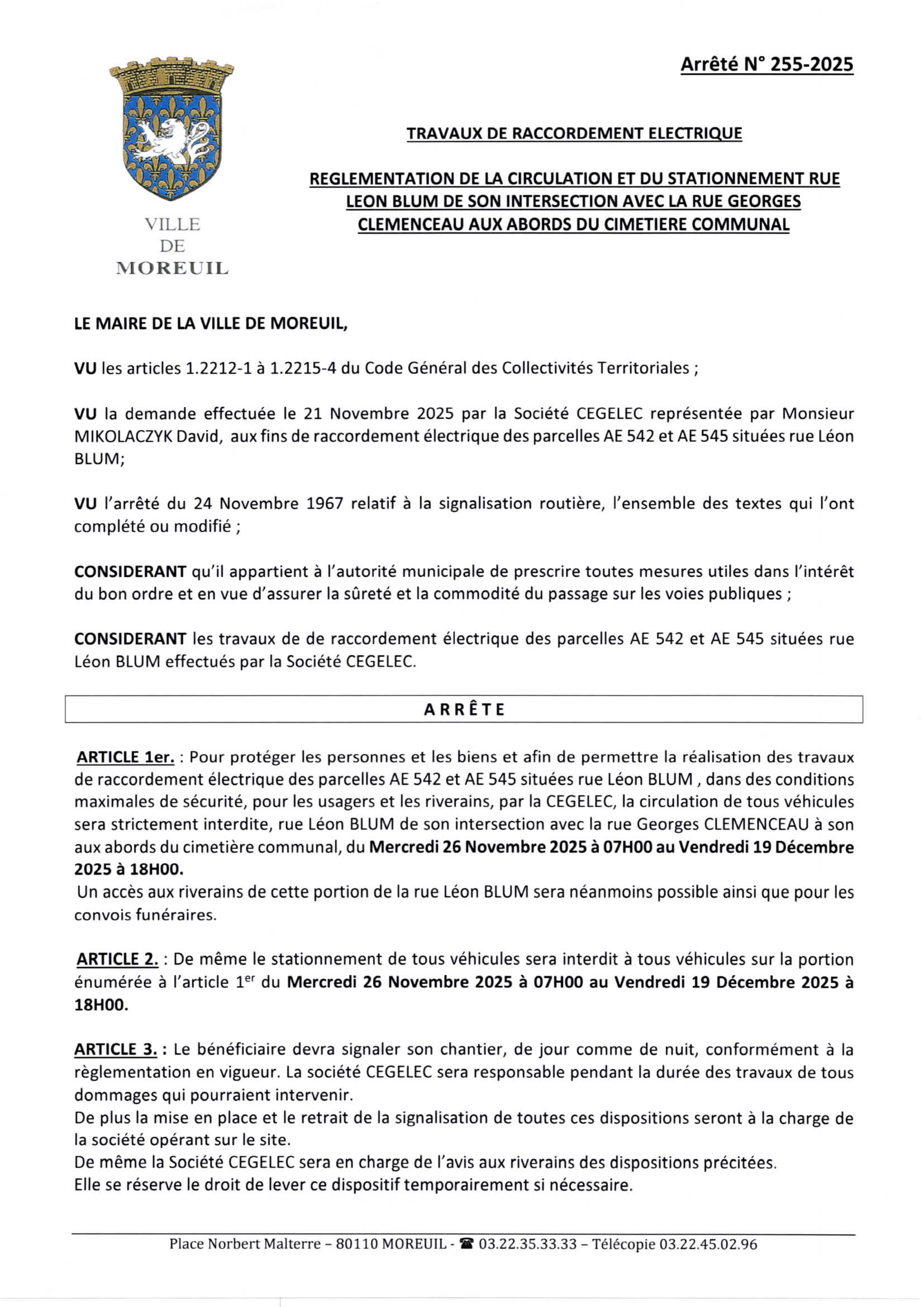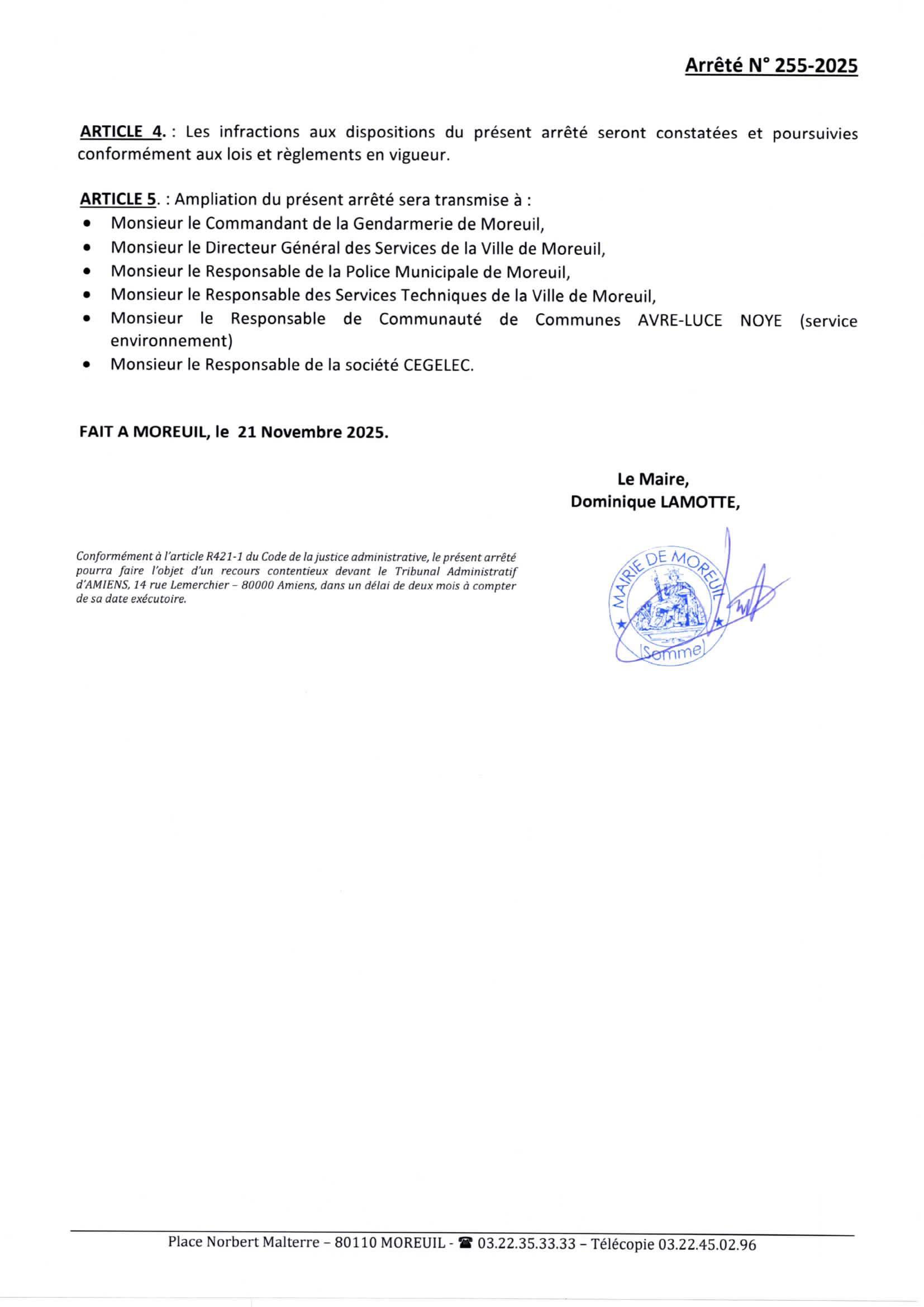 Arrêté n°255/2025