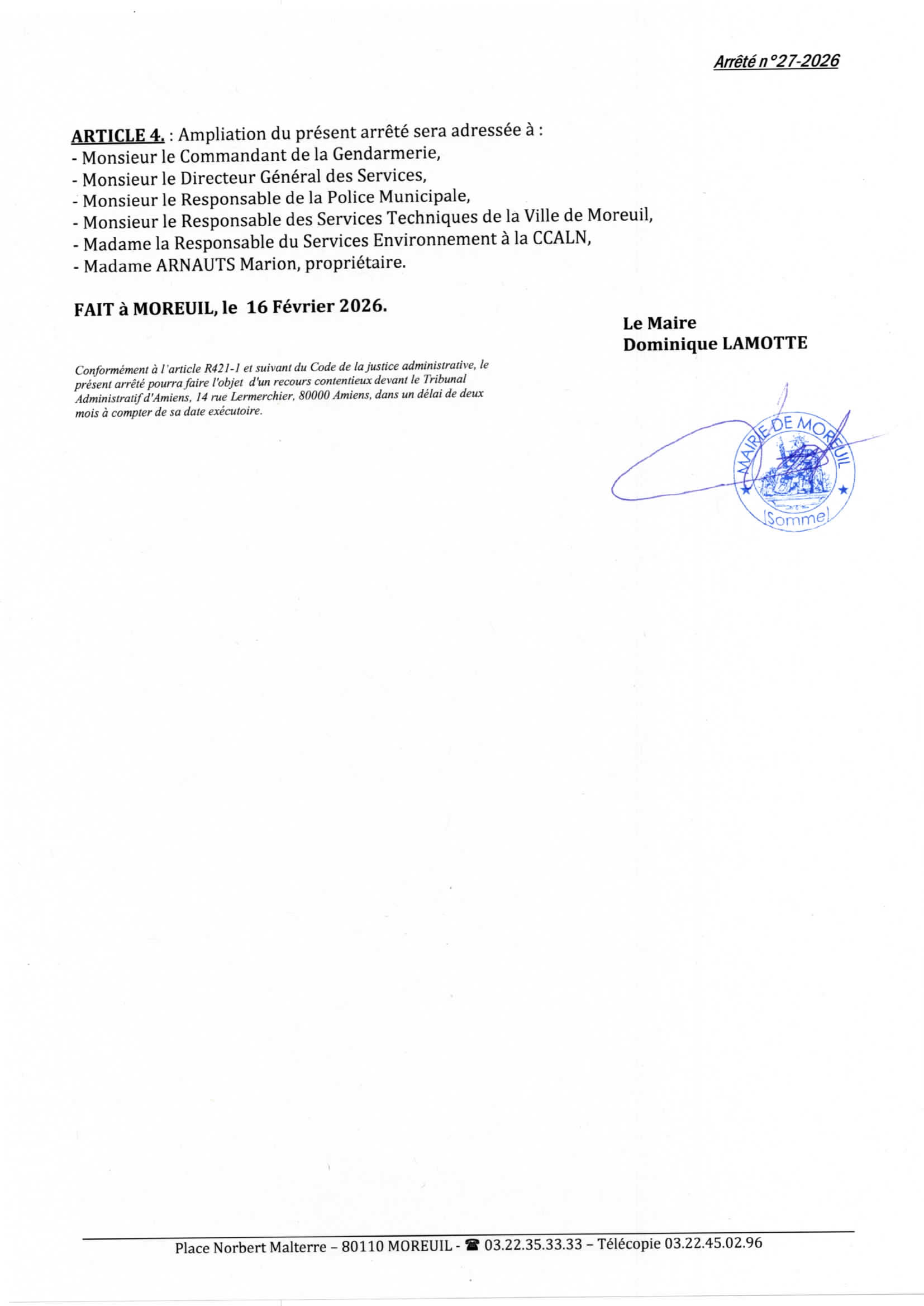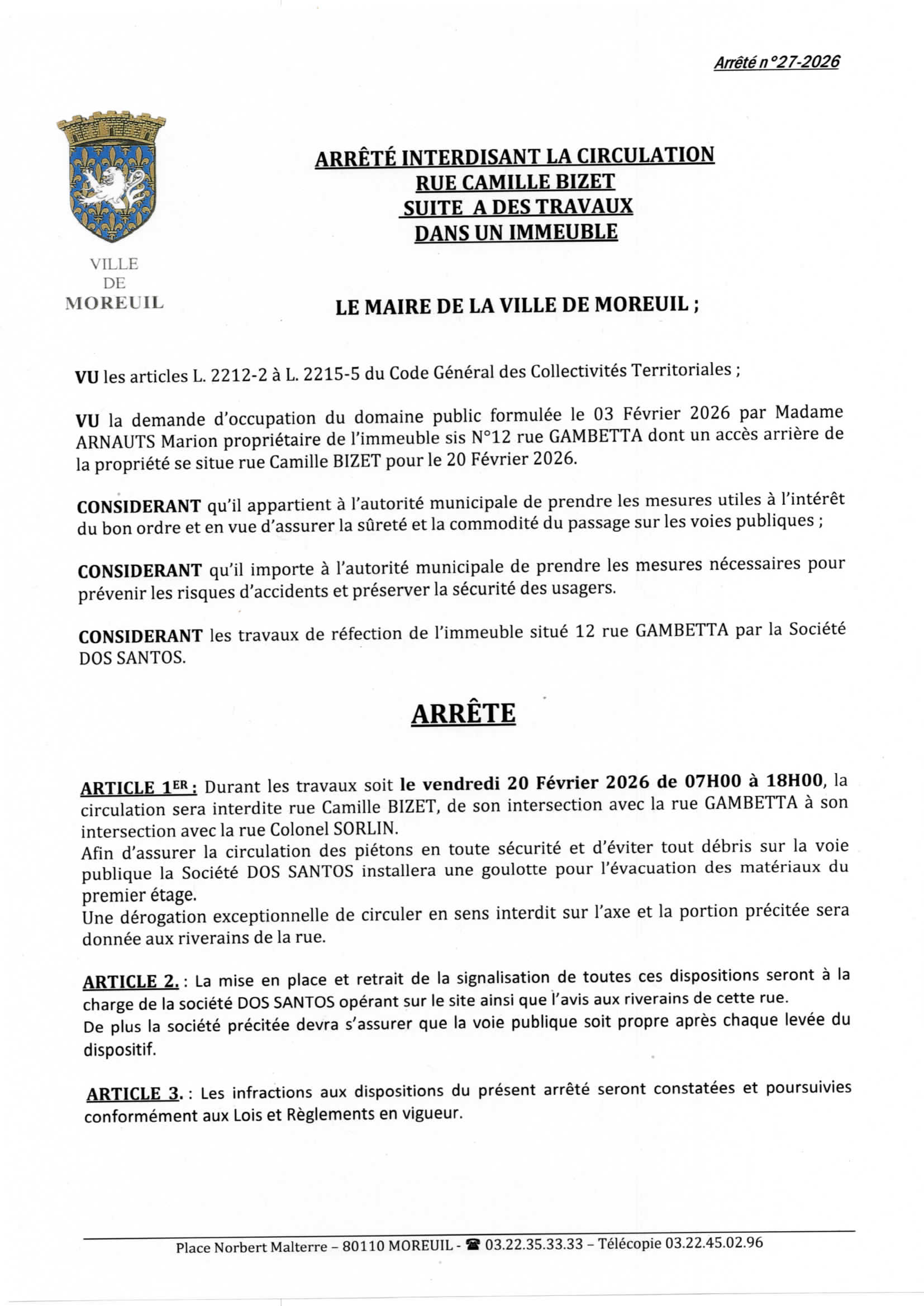 Arrêté n°27/2026