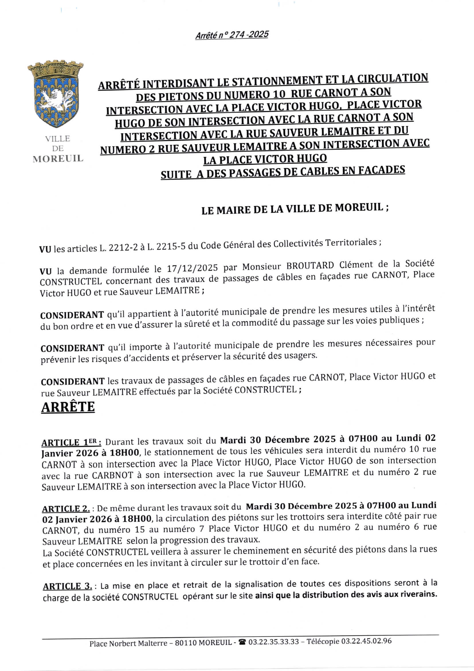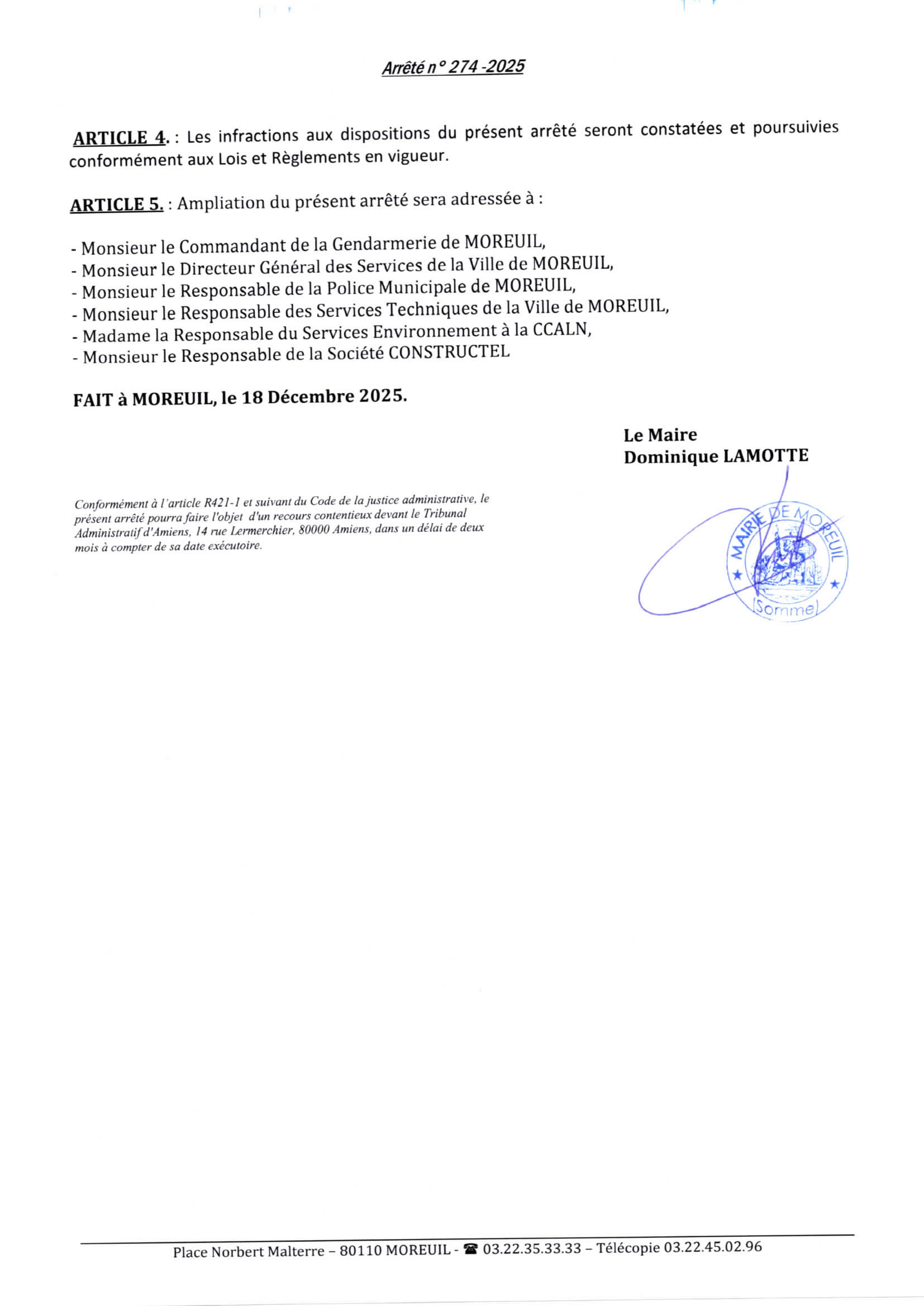 Arrêté n°274/2025