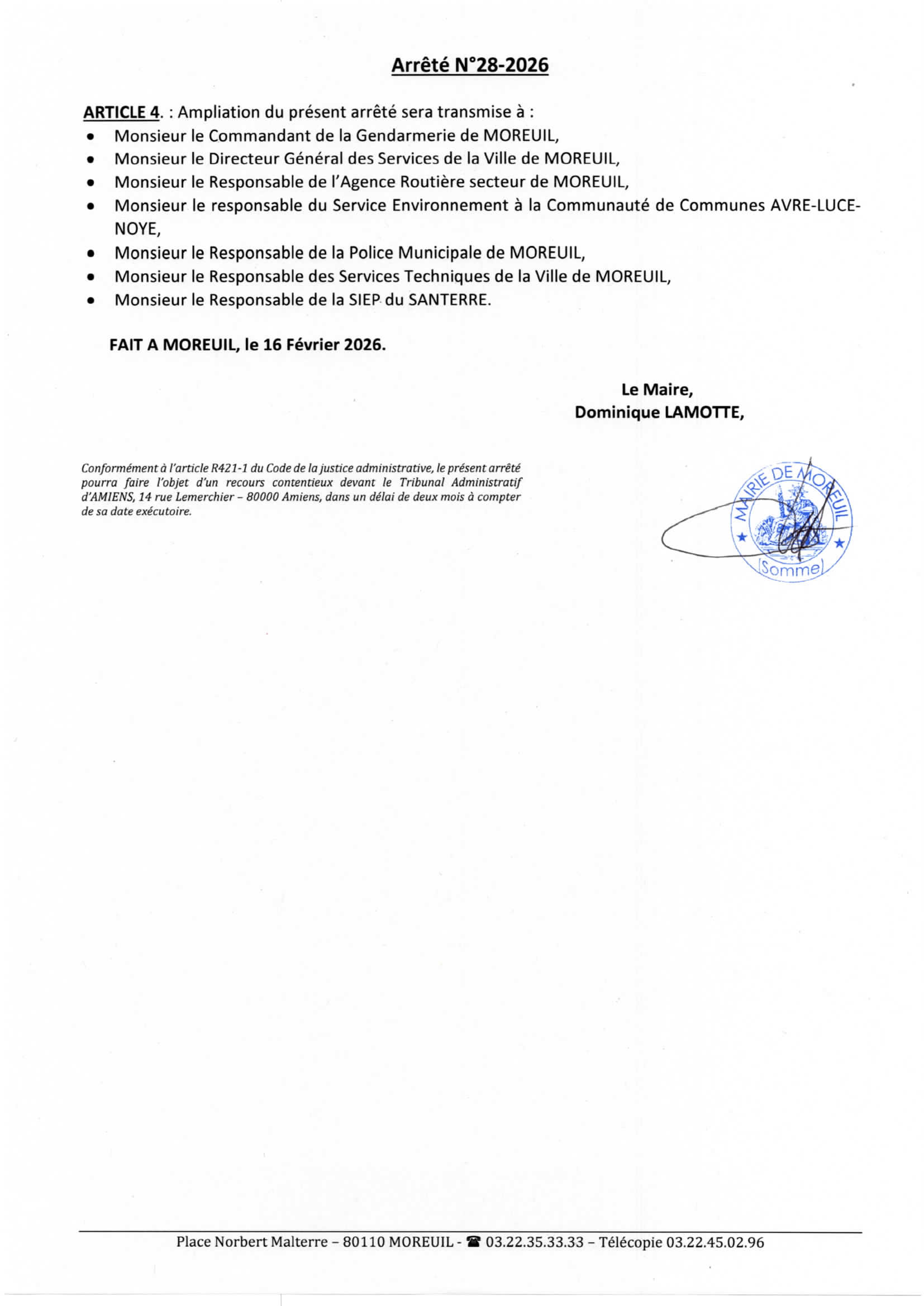 Arrêté n°28/2026