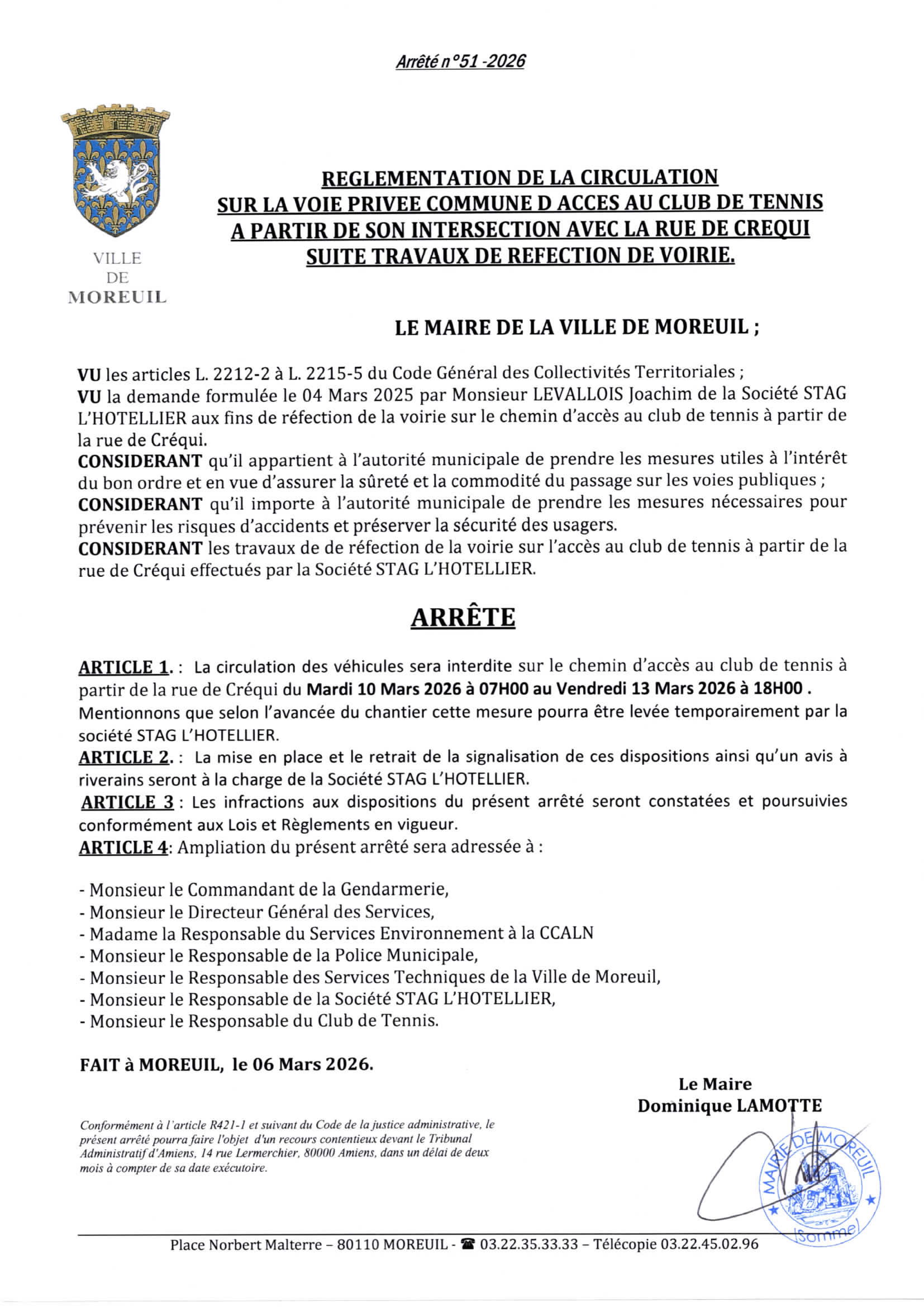 Arrêté n°51/2026